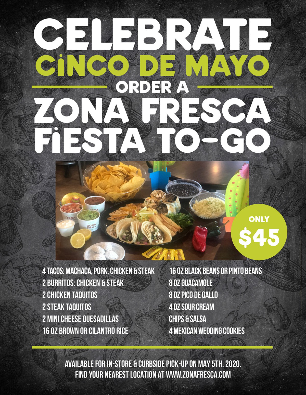 Celebrate Cinco de Mayo 2020 with a Zona Fresca Fiesta To-Go Platter!